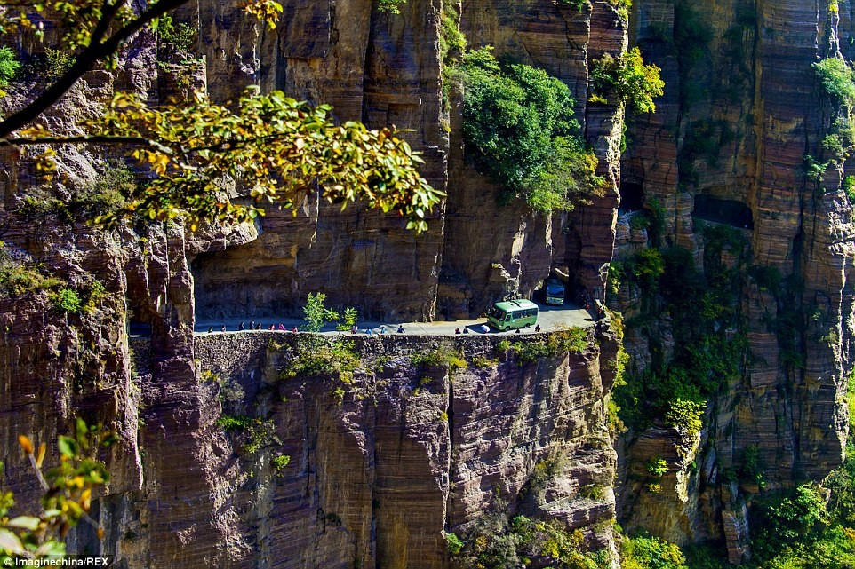 Được mệnh danh là con đường không được phạm sai lầm, đường hầm Quách Lượng dài 1.250 m, chỉ rộng 4 m với nhiều khúc quanh khiến những tay lái cứng cáp nhất cũng phải e ngại. Con đường nằm chênh vênh trên vách đá dựng đứng cao 200 m, kết nối ngôi làng hẻo lánh ở miền Nam Trung Quốc với thế giới bên ngoài. Ảnh: South China Morning Post.