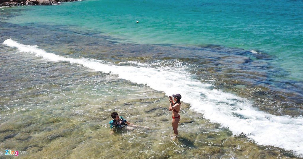 Ngoài biển xanh, cát trắng mịn bên những bãi tắm đẹp, du khách còn ấn tượng với dải san hô tuyệt đẹp ven gành đá nơi đây.