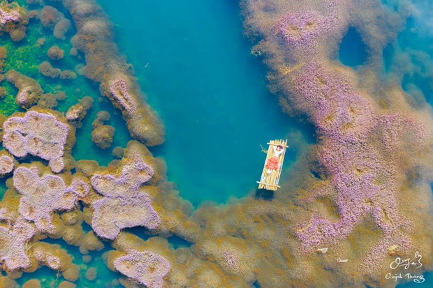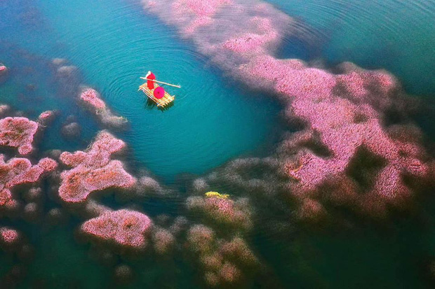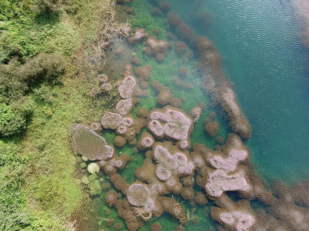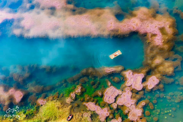 Dạo gần đây, trên Facebook còn lan truyền rất nhiều hình ảnh về một chiếc hồ được gọi tên là Tảo Hồng siêu lạ mắt. Được biết, hồ nước này có một loài tảo nở hoa màu hồng tuyệt đẹp vào tầm tháng 10, 11 hàng năm. Tảo mọc lên từ dưới lòng hồ rất nhanh và bung nở những chùm hoa màu hồng tím theo từng cụm lan ra khắp mặt hồ tuyệt đẹp, khiến ai thoạt nhìn cũng phải ngỡ ngàng tự hỏi rằng liệu nó có thật không?
