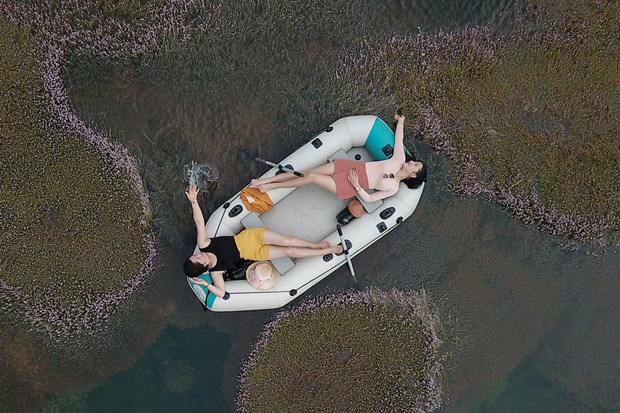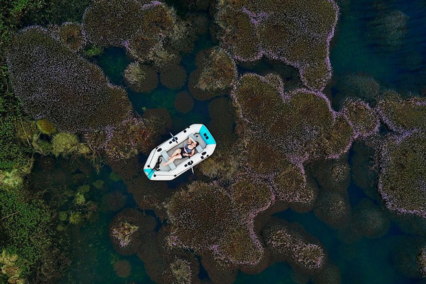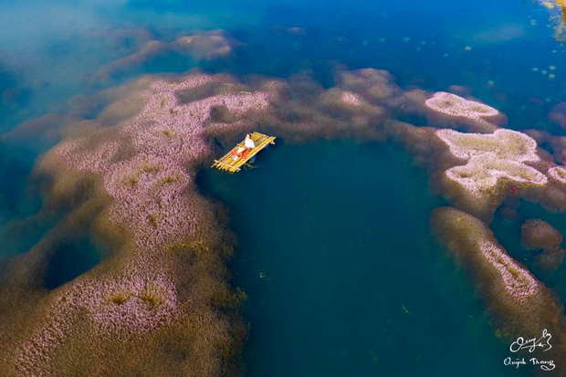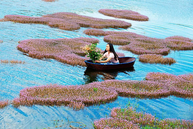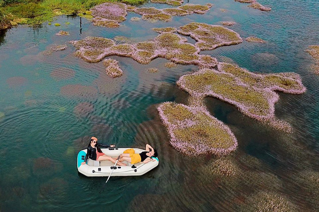 Vào những buổi sáng sớm hoặc chiều tà, ánh nắng xiên đổ xuống mặt hồ trong vắt màu xanh ngọc bích tạo nên khung cảnh lãnh mạn như chốn thần tiên. Đến đây, bạn có thể thuê thuyền của người dân để đi dạo trên hồ và chụp lại những bức hình kỷ niệm. Nếu muốn có ảnh sống ảo "xịn sò" hơn, bạn phải bay flycam từ trên cao để bắt trọn vẻ đẹp của mặt hồ với những khối tảo hồng trôi lênh đênh tuyệt đẹp.