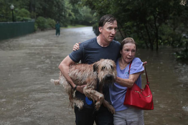 Một gia đình hoảng hốt sau khi siêu bão Harvey càn quét bang Texas vào tháng 8 - Ảnh: Getty
