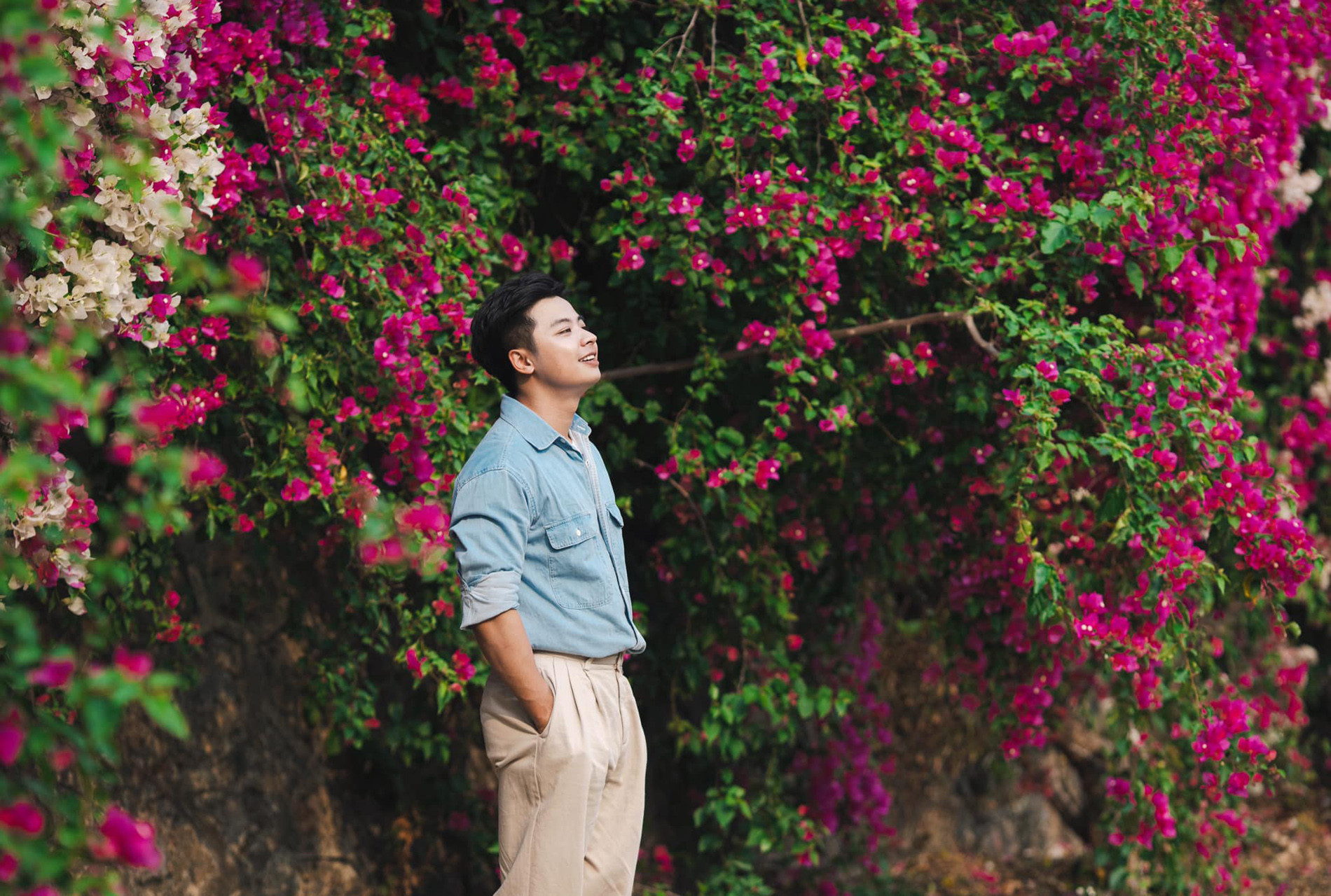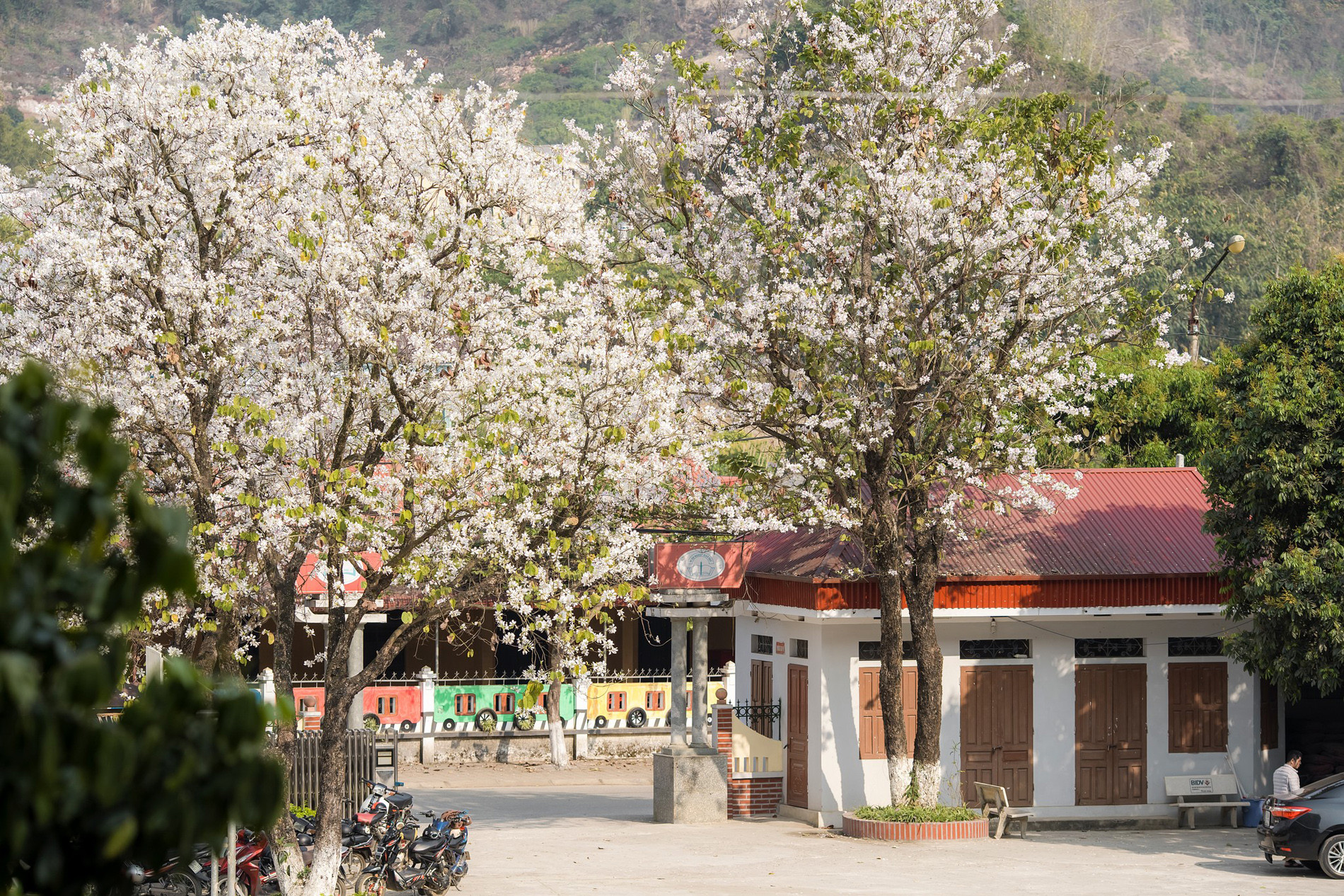 Hoặc bạn có thể lựa chọn tới Quảng trường Mộc Châu để check-in với giàn hoa giấy bung nở rực rỡ.