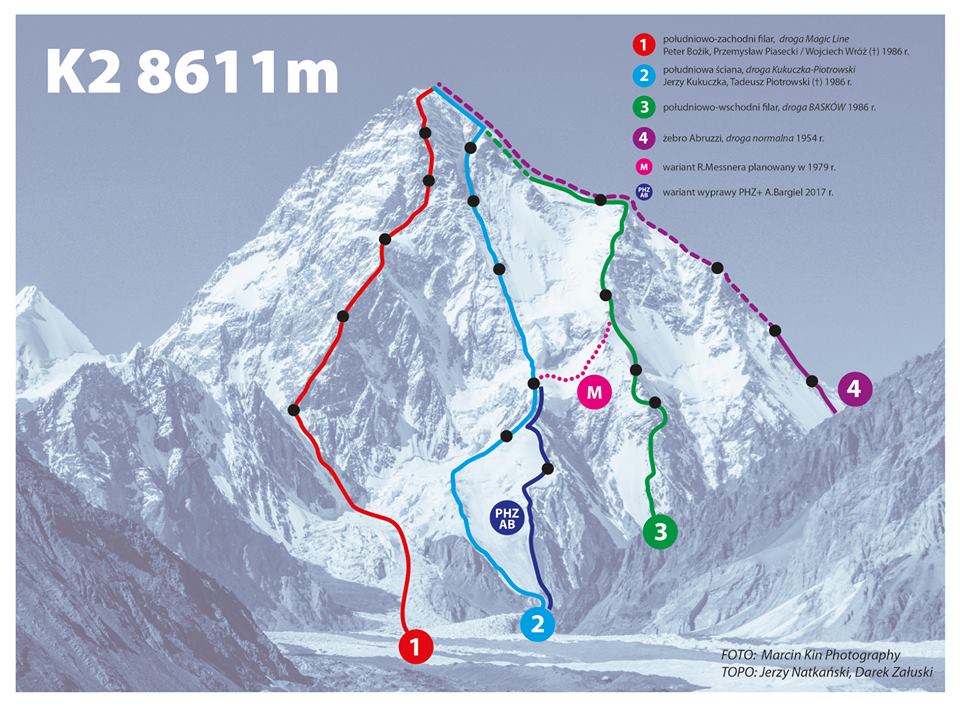 Năm 2017, Bargiel tuyên bố ý định trượt tuyết trên đỉnh K2. Davo Karničar, vận động viên trượt tuyết kỳ cựu người Slovenia năm 2000 đã trở thành người đầu tiên chỉnh phục đường trượt từ đỉnh Everest xuống mặt đất, tuyên bố kế hoạch tương tự của mình. Năm 1993, Karničar là người đầu tiên thử trượt tuyết K2 nhưng đã từ bỏ nỗ lực sau khi gió thổi bay ván trượt không người lái của anh ra khỏi ngọn núi ở độ cao 7,894m. Tình hình thậm chí có thể tệ hơn nữa, nhiều trường hợp trên K2 đã được ghi nhận gió trên đỉnh núi mạnh đến mức thổi bay những người leo núi rơi xuống vực.