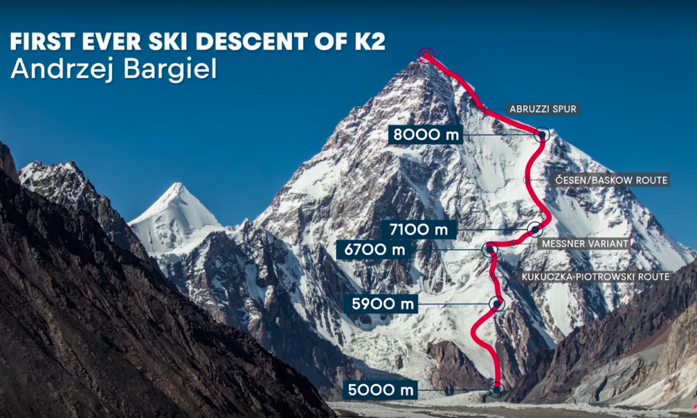 Người ta bắt gặp Andrzej Bargiel khi đang leo lên một bức tường băng trong lần thử đầu tiên của mình tại K2 ở Pakistan vào ngày 25 tháng 6 năm 2018. Nhà leo núi trượt tuyết người Ba Lan đã đi vào lịch sử vào ngày 22 tháng 7 năm 2018 khi anh trở thành người đàn ông đầu tiên trượt xuống từ đỉnh núi K2, đỉnh cao thứ hai trên thế giới ở độ cao 8,611m so với mực nước biển.