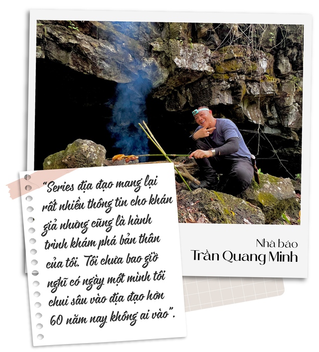 Series địa đạo mang lại rất nhiều thông tin cho khán giả nhưng cũng là hành trình khám phá bản thân của tôi. Tôi chưa bao giờ nghĩ có ngày một mình tôi chui sâu vào địa đạo hơn 60 năm nay không ai vào. Có những đường địa đạo đường ngập làm tôi không thể đi được và buộc phải quay ra hay địa đạo sập không thể đi được nữa. 114 địa đạo giờ chỉ còn có trên 20 địa đạo đủ khả năng chui vào được. Cộng với sự thay đổi của làng quê, người ta cũng phải lấp bớt đi để dùng đất sinh nhai, nhiều địa đạo trúng bom Mỹ từ thời xưa bị sập để lại rất nhiều nấm mồ chôn tập thể ở đó.