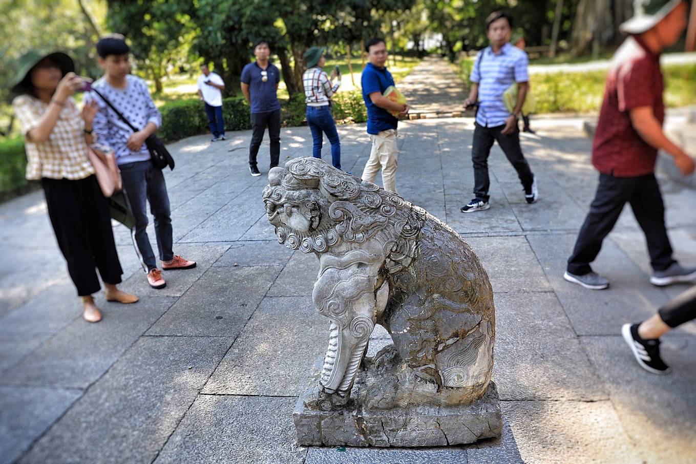 Trước Ngọ môn có con nghê đá đứng canh. Phần lưng và đế nghê vẫn còn giữ nguyên bản, có niên đại hàng trăm năm. Phần đầu và chân trước mới được phục dựng lại gần đây.