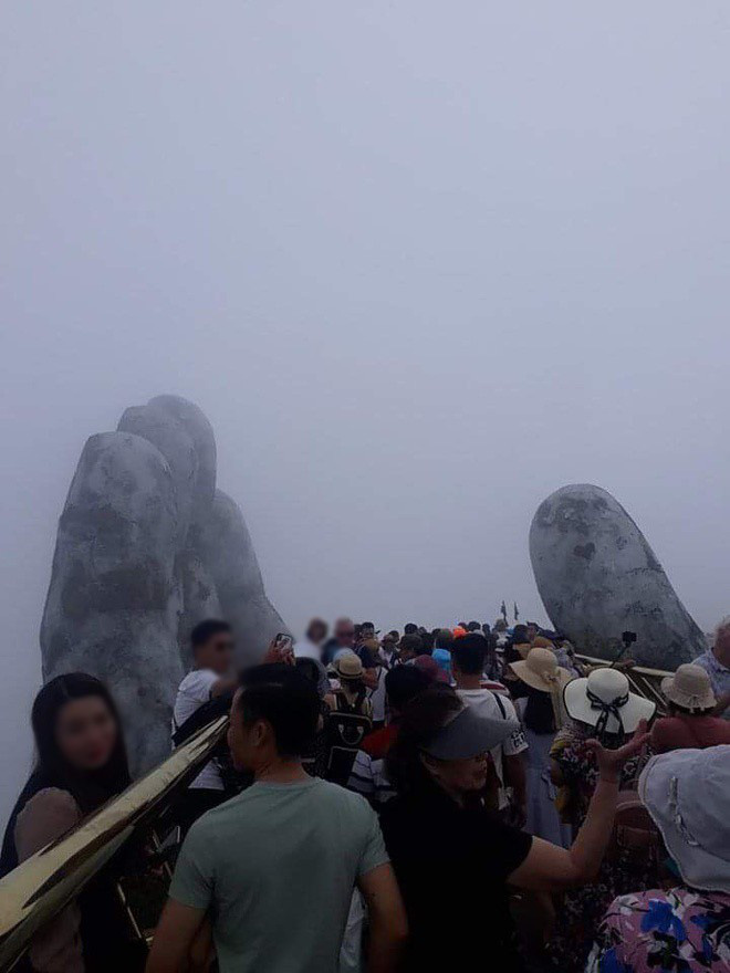Du khách chen chúc trên Cầu Vàng Đà Nẵng (Ảnh: Facebook Vu Vơ)