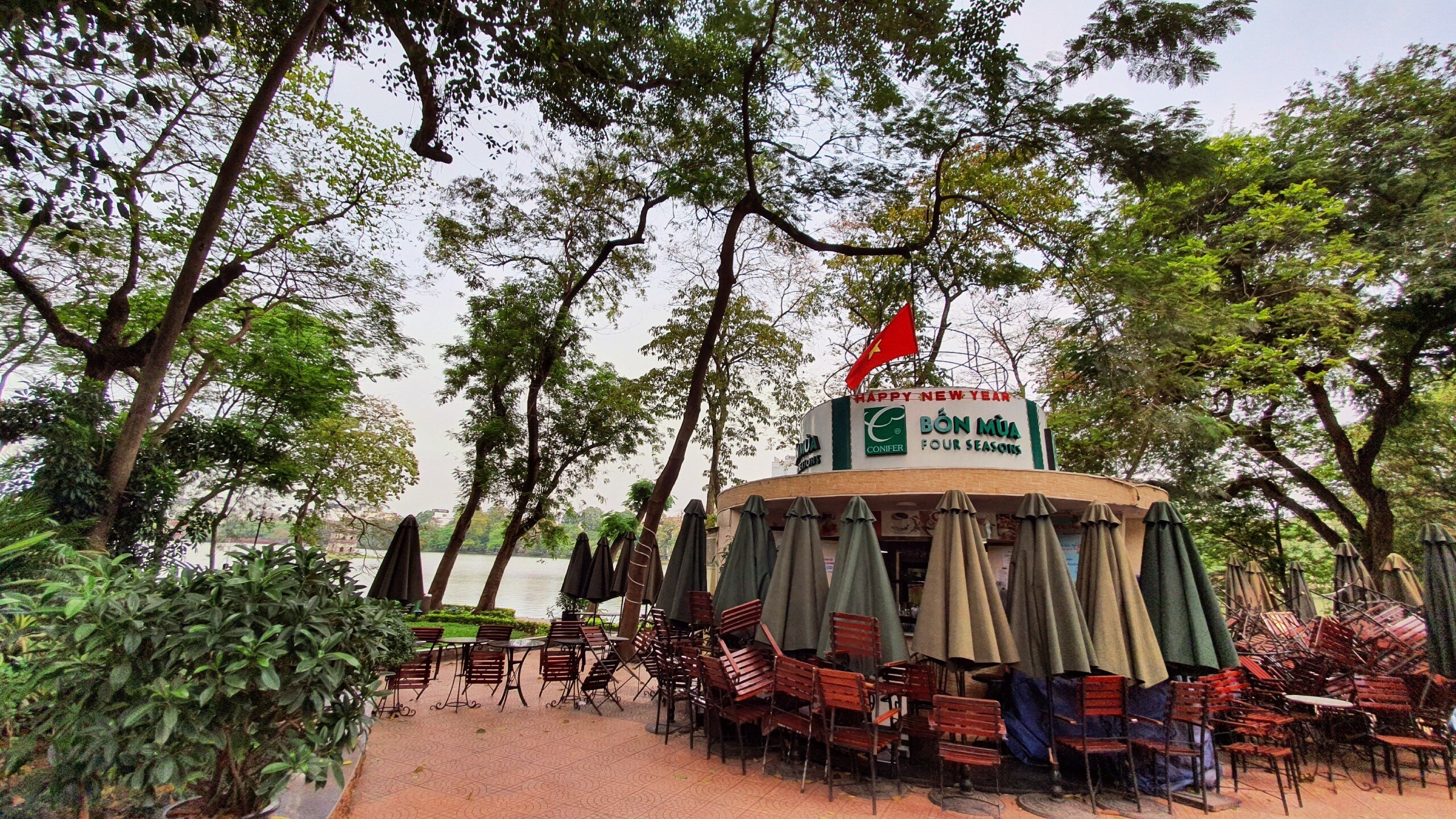 Quán cà phê 4 mùa bên bờ hồ Hoàn Kiếm cũng đã đóng cửa.