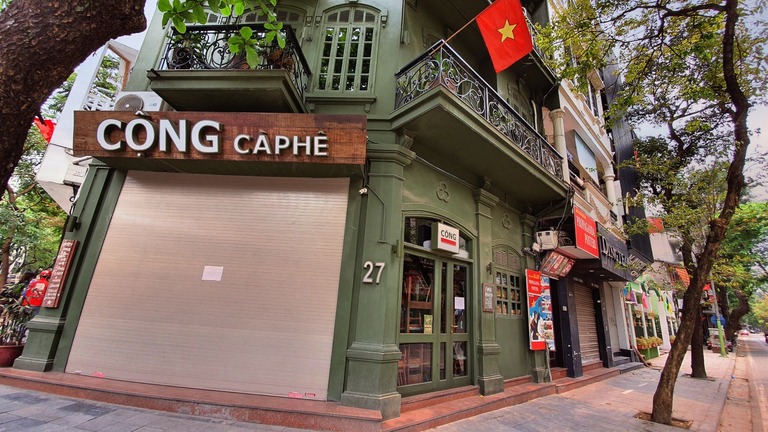 Quán cà phê Cộng trên phố Nhà Chung đã đóng cửa sau lệnh giới nghiêm.