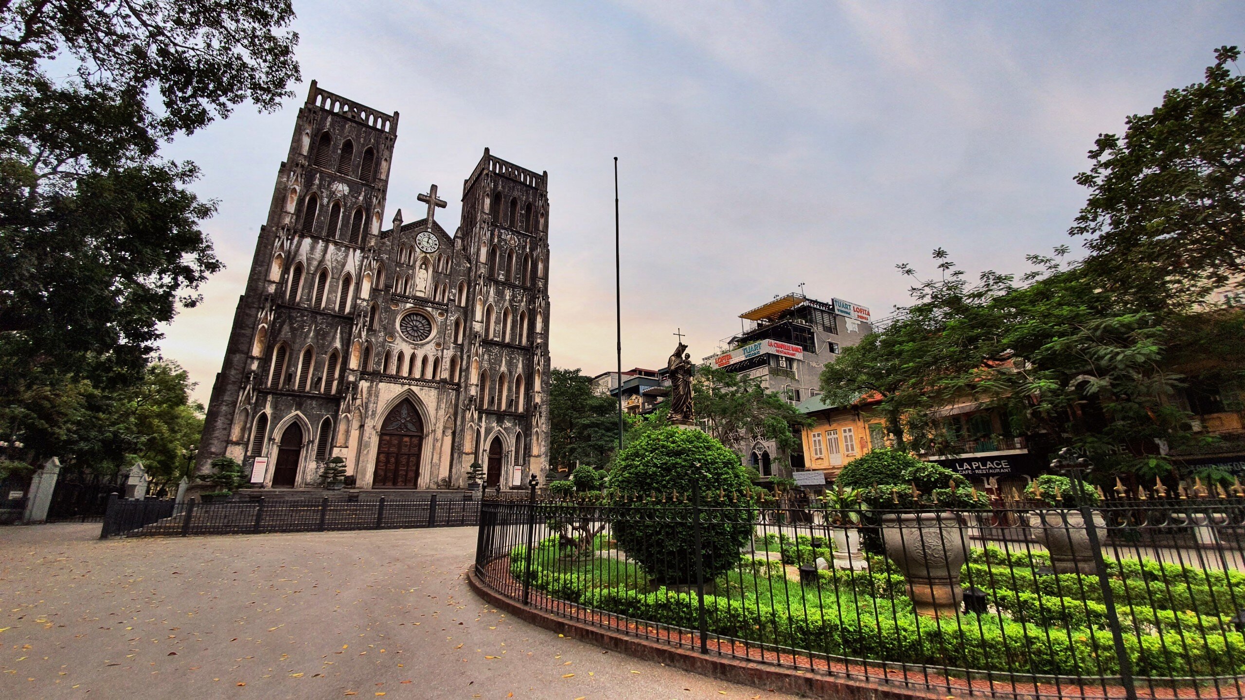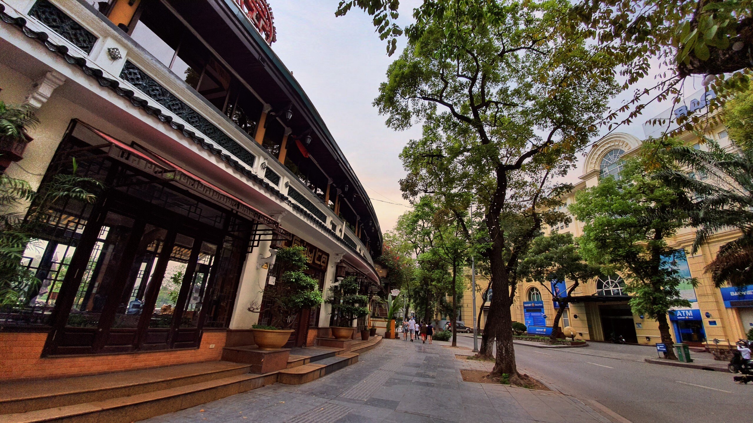 Khách sạn Sofitel Metropole nhìn từ điểm giao cắt giữa phố Lê Phụng Hiểu và phố Ngô Quyền.