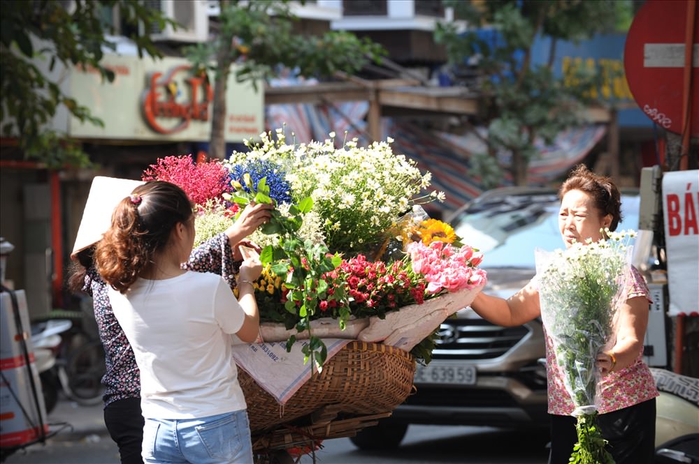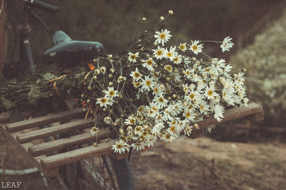 Từ bao giờ, bạn có thể bắt gặp những đóa cúc họa mi trắng muốt trên những chiếc xe đạp len lỏi khắp các ngõ phố Hà Nội. Ảnh: Trần Tuấn Anh
