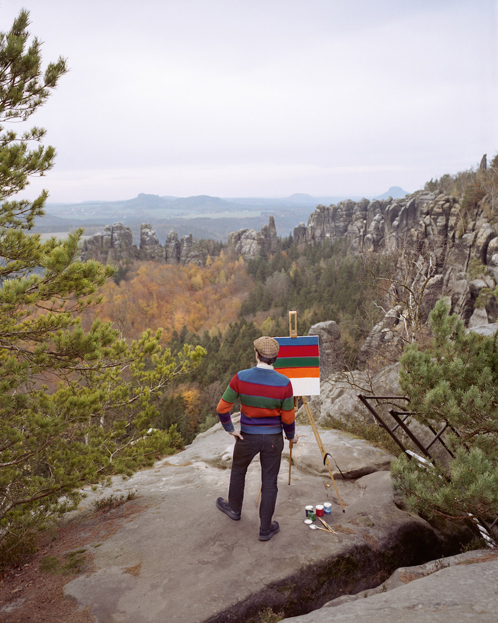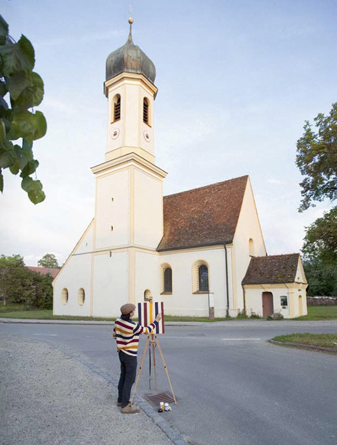 Hai nghệ sĩ người Đức đã ghi lại loạt ảnh hài hước với một người đàn ông bên giá vẽ, dựng giữa phong cảnh đẹp. Nhưng thay vì vẽ tranh phong cảnh như người ta mong đợi, anh ta lại vẽ chính họa tiết trên chiếc áo đang mặc. Schubert chia sẻ, bộ đôi đã nảy ra ý tưởng này vào năm 2009 ngay sau khi họ gặp nhau lúc đi leo núi Zillertal Alps ở Áo. "Hai chúng tôi đi lang thang tìm niềm cảm hứng sáng tạo nghệ thuật. Chúng tôi đã kết hợp với nhau, tôi có máy ảnh còn Schmidt có tranh và giá vẽ", anh nói với Huffpost.