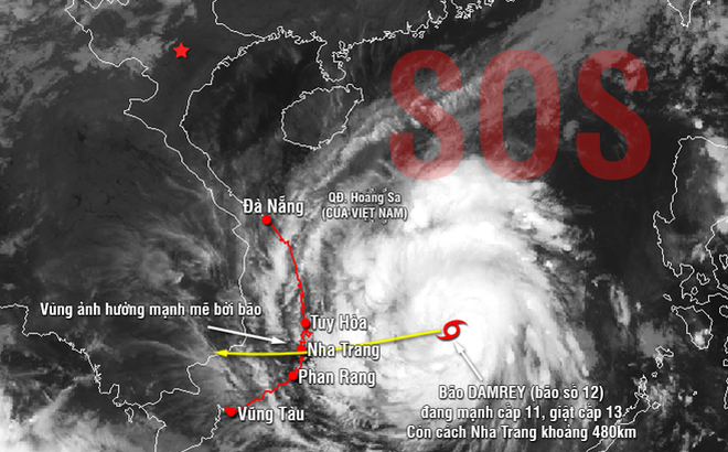 Dự kiến trong tối ngày 3 đến sáng ngày 4/11 theo giờ Việt Nam, bão Damrey (tức cơn bão số 12) sẽ tiến vào khu vực Nha Trang và Phan Rang-Tháp Chàm, gây ra gây mưa to, gió lớn.