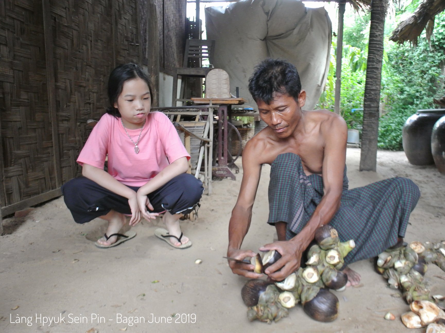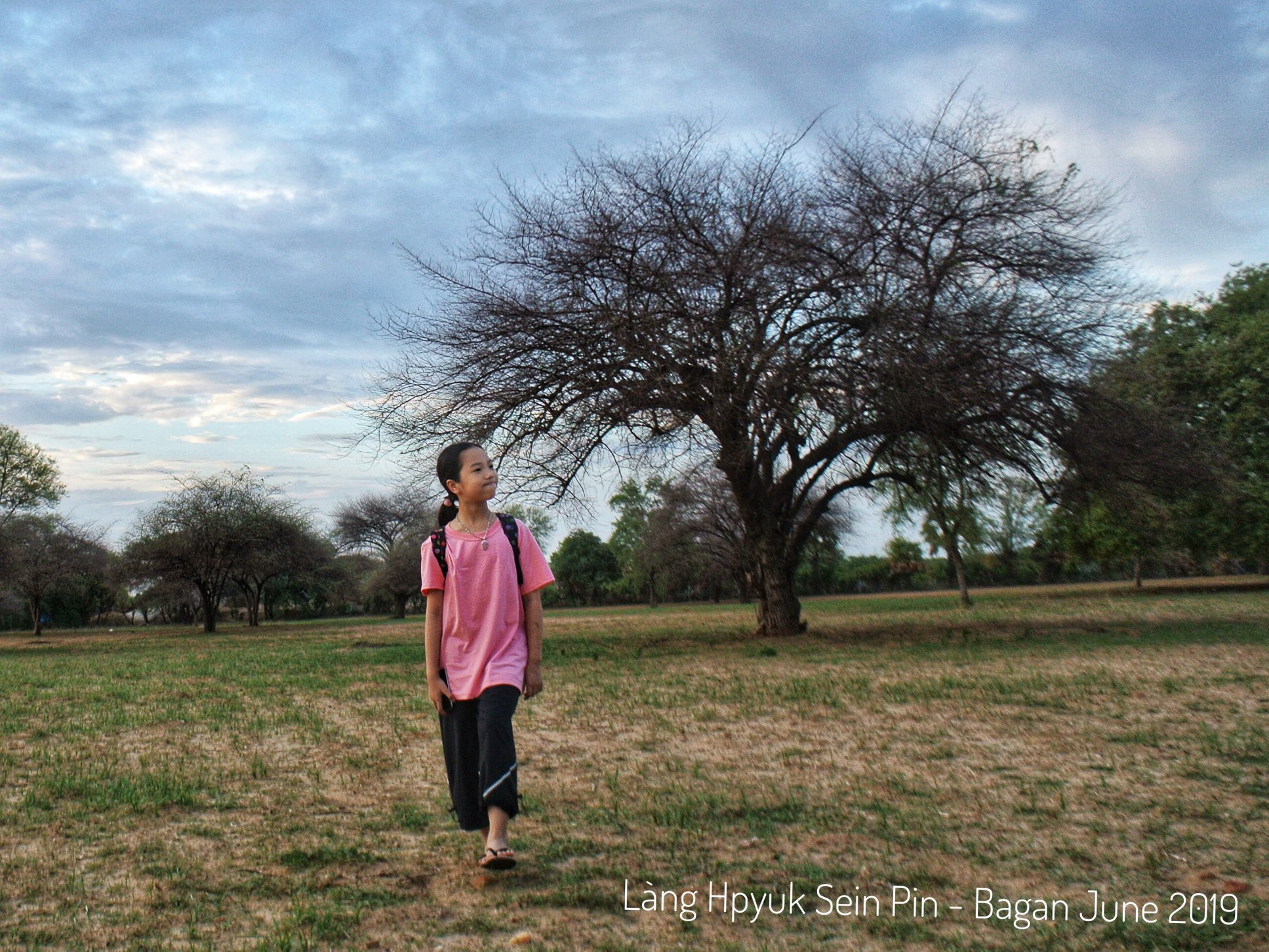 Chiều hôm đó sau giờ làm, hai bố con đi xe máy điện thuê chạy theo cậu ấy. Tới một làng quê cách Hostel cớ hơn 10 km, nhưng cảm thấy rất xa và phong cảnh đối khác qua nhiều ... có đoạn giống như những cánh đồng bên Cambodia, có đoạn lại giống như một nơi xa xôi mình từng đọc trong cuốn truyện "Trăm năm cô đơn" từ thời nhỏ. Cô gái của mình cũng cảm xúc theo phong cảnh. Cậu bé dẫn hai bố con đi khắp làng, rồi về nói chuyện với mẹ cậu, rồi được ăn môt bữa cơm quê truyền thống Mynamar đích thực, được ăn một số quả cây mà không có ở Việt nam nên cũng không biết gọi là quả gì nữa ... cơ hội mà có lẽ rất ít khách du lịch bình thường có được.