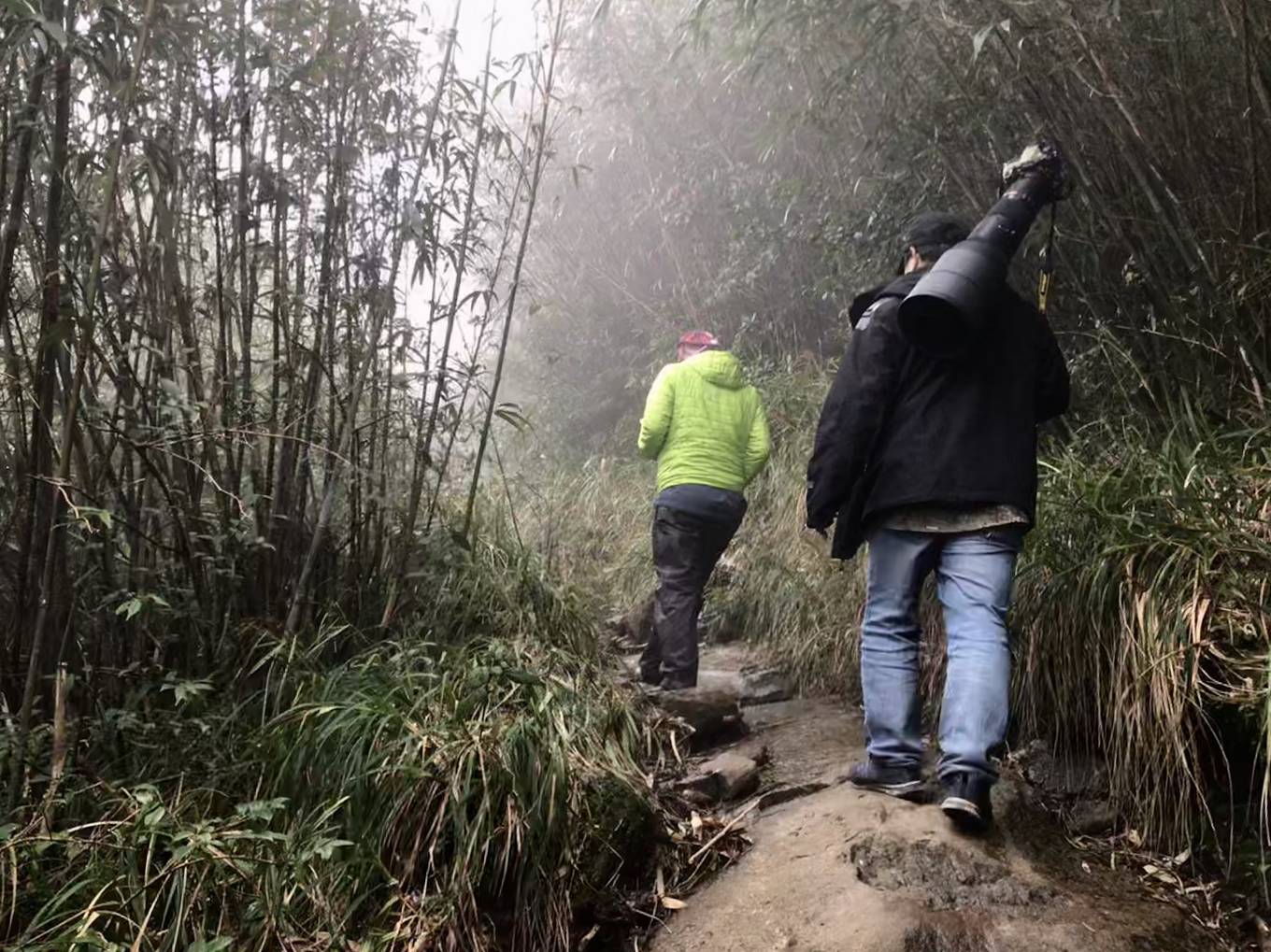 Cả nhóm đi cáp treo lên đỉnh Fansipan rồi theo đường bộ xuống vùng rừng tại độ cao khoảng 2.800 m thuộc địa phận xã San Sả Hồ, dựng trại ngủ đêm và trekking ngược lên núi săn ảnh chim đến độ cao 3.100 m, sau đó lên đỉnh và đi cáp treo xuống núi. Ảnh: Thuần Võ.