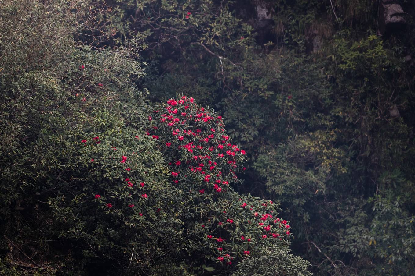 Được mệnh danh là “vương quốc hoa đỗ quyên”, rừng Hoàng Liên tập trung đến 40 loài đỗ quyên có nhiều màu sắc, dáng vẻ khác nhau, từ vàng tươi, phớt hồng cho tới đỏ thắm. Ảnh: Nguyễn Mạnh Hiệp.
