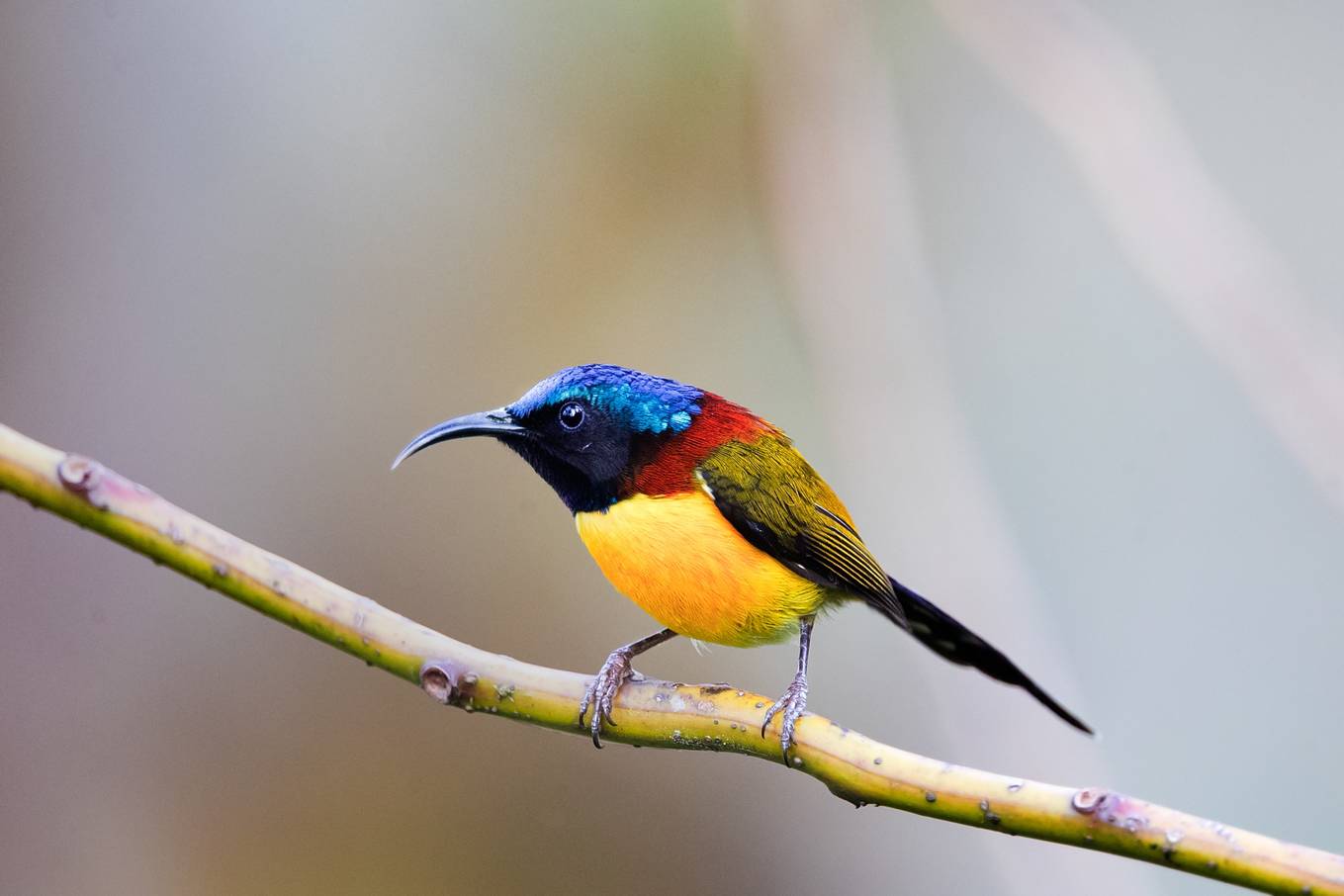 Chim hút mật Nepal hay còn gọi hút mật đuôi lục (chim trống) với màu sắc sặc sỡ. Ảnh: Thuần Võ.