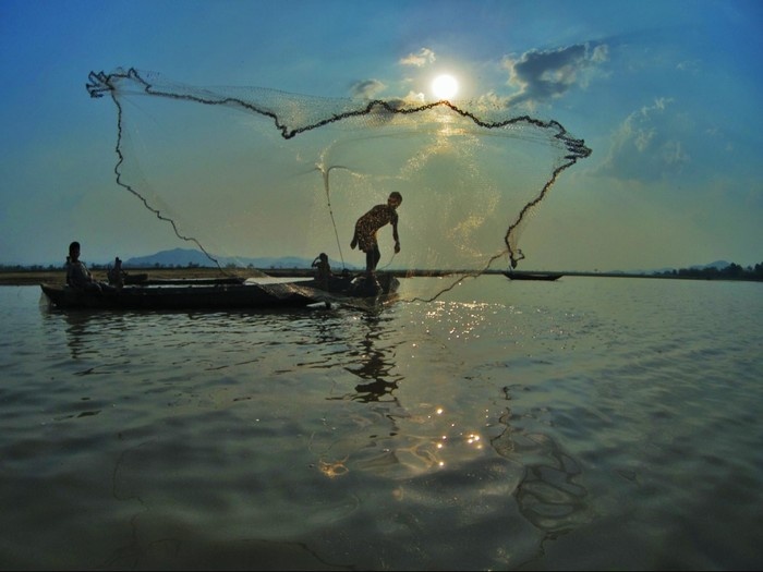 Một ngư dân quang lưới trên hồ Lắk qua ống kính của nhiếp ảnh gia Waage Ruyn Ruy.