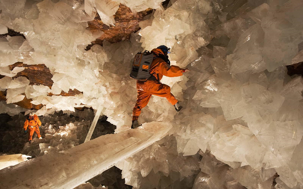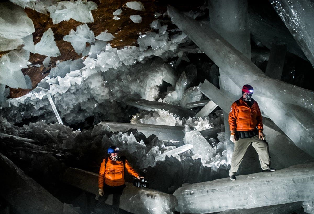 Các nhà khoa học đã tích cực làm việc trong mỏ Naica từ năm 2001 cho đến trận lụt vào năm 2017. Họ phát hiện ra xác các loài sinh vật bên trong tinh thể. Nghiên cứu chỉ ra chúng bị mắc kẹt từ 10.000-50.000 năm. Qua kiểm tra, một số vi khuẩn được tìm thấy không khớp với bất kỳ dạng sống nào từng được biết đến trên hành tinh. Ảnh: Travel + Leisure.