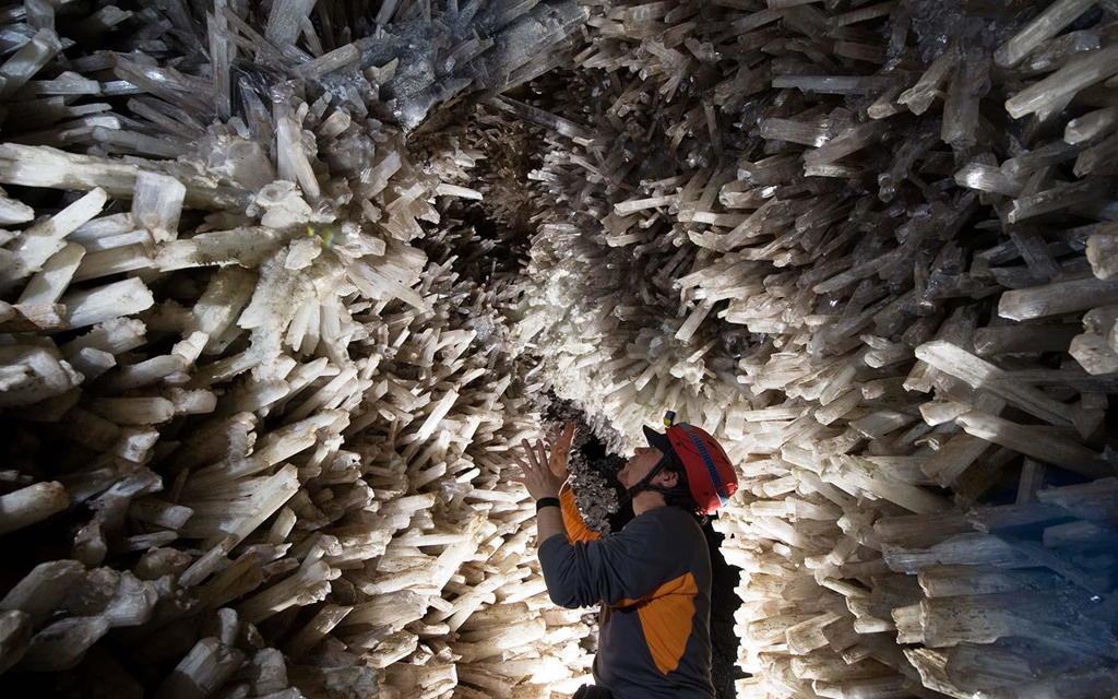 Chứa tinh thể thạch cao selenite với nhiều kích thước khác nhau, hang Naica là nơi có môi trường khắc nghiệt. Nhiệt độ ở đây khoảng 59 độ C và độ ẩm trên 90% tương đối ổn định, góp phần tạo điều kiện thích hợp cho sự phát triển của tinh thể. Các nhà khoa học đã phát hiện khối tinh thể khổng lồ dài 12 m, dày khoảng 1 m. Ảnh: Geologyt.
