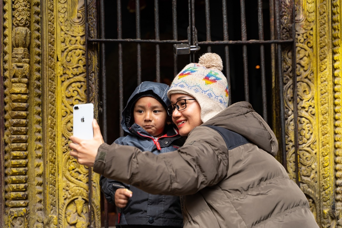NEPAL - "Đến chợ Asan, khu phố sôi động với những ngôi đền và bảo tháp, tôi thấy như đang lạc vào những thước phim mình từng xem", Trung Hiếu chia sẻ.