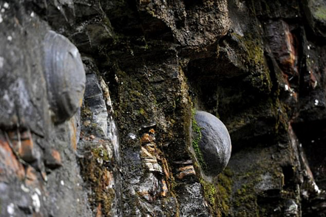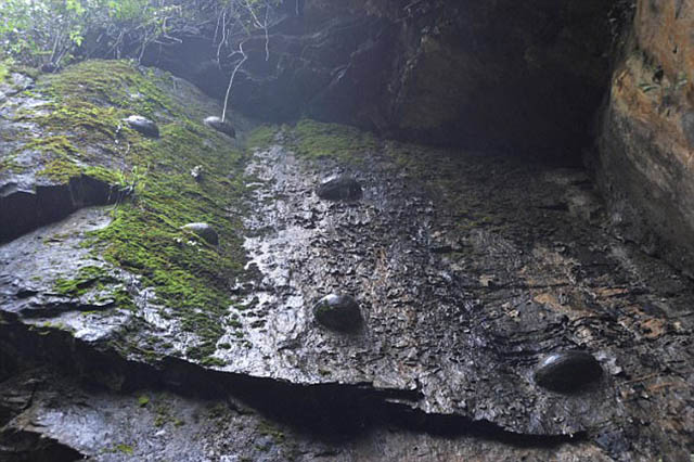 Những quả trứng đá có màu xanh lam đậm, thoạt trông như là trứng hóa thạch nhưng không phải. Điều kỳ lạ nhất là những quả trứng thay phiên nhau phát triển theo thời gian, một số quả đang dần nhô ra và đợi một thời gian sẽ rớt xuống.