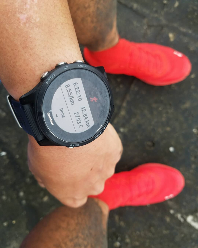 Bất chấp thời tiết có mưa, Nguyễn Tiến Đạt vẫn thực hiện cuộc thử thách và đã hoàn thành với thành tích ấn tượng. Anh trở thành người Việt đầu tiên chạy Marathon trên sân thượng