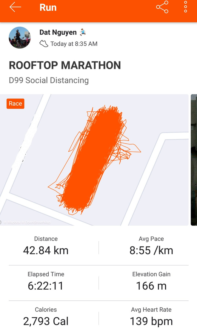 Mới nhất, Nguyễn Như Đạt đã thử sức với một đường đua "đặc biệt" trong mùa dịch Covid-19. Anh Đạt đã chạy marathon dài hơn 42km trên...sân thượng trong hơn 6h22 phút