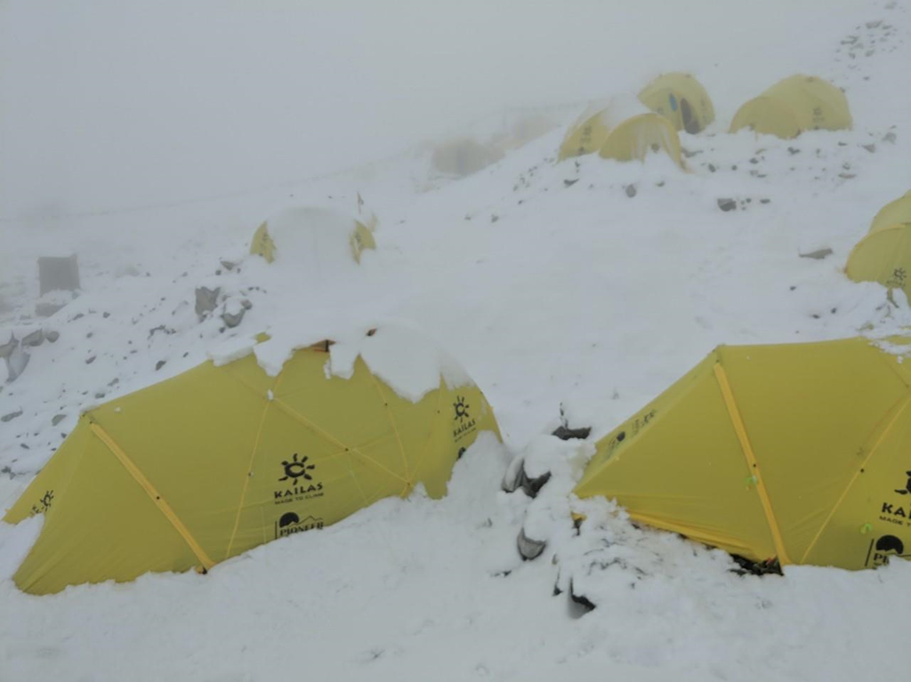 Tuyết trắng xóa phủ kín những căn lều của nhà leo núi.