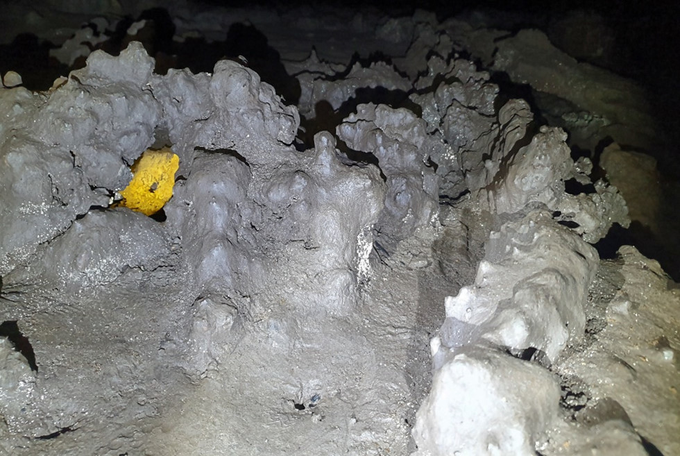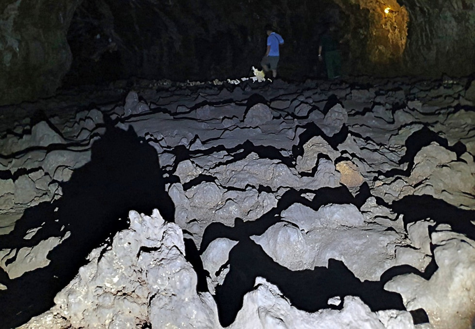 Bên trong hang C3 có hàng loạt những cấu tạo điển hình đối với hang động dung nham có giá trị khoa học và du lịch (Ảnh: Nguyễn Chung)