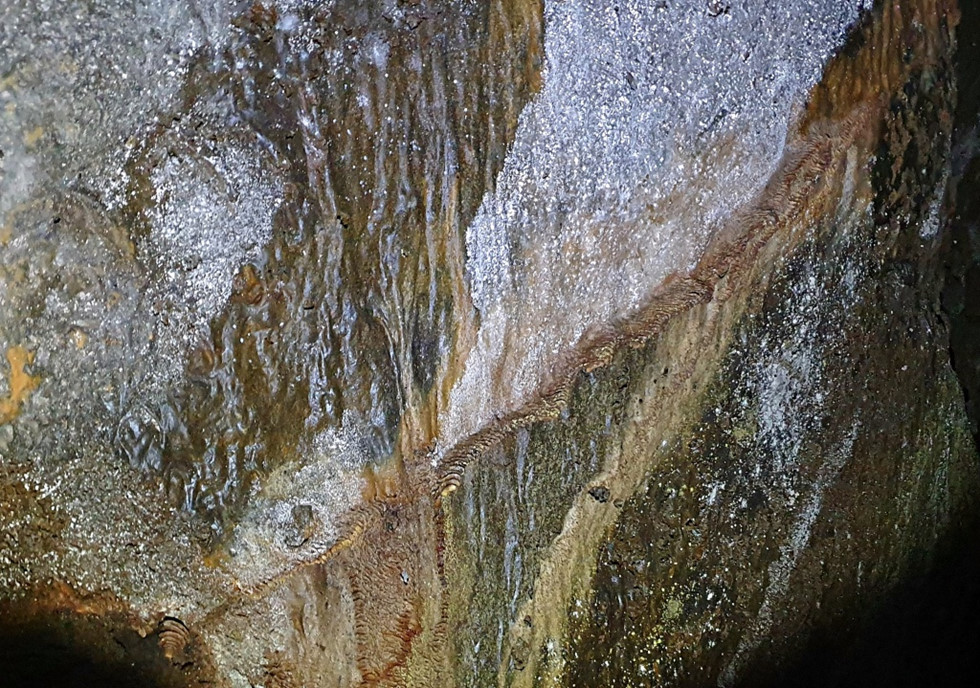 Trong hang có các loại nhũ thứ sinh khá phát triển với màu trắng sữa dọc theo các khe nứt, dễ dàng quan sát được (Ảnh: Nguyễn Chung)