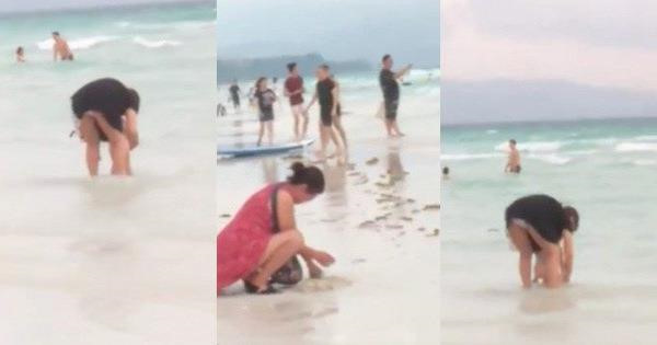 Bãi biển Boracay (Philippines) đã phải đóng cửa hồi đầu tháng 8 do du khách Trung Quốc chôn tã lót của con xuống cát. Tổng thống Rodrigo Duterte từng cấm khai thác bãi biển này trong 6 tháng ở lần đóng cửa đầu tiên vì mùi hôi "như hầm phân". Ảnh: NewBeezer.