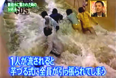 Tại Nhật Bản, người ta đã quay một đoạn video hướng dẫn người dân làm cách nào để tự cứu mình khỏi một “dòng lũ quét” đột ngột xuất hiện.