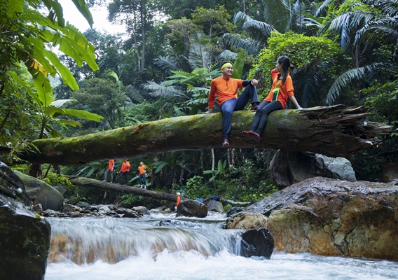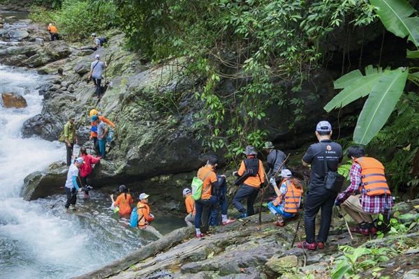 Lên với Ngân Thuỷ, du khách thích thú khi thử thách vượt thác nước hoang sơ
