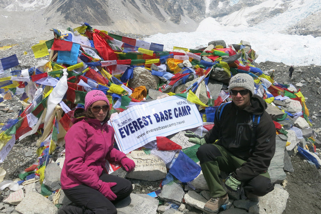 Sau hơn 8 h vật lộn thì trạm 2 ngay trc mắt thật rồi! Nhìn lại phía sau một đoạn đường mà ai đi thì mới hiểu. Chúng tôi ngồi bệt xuống, người thừ ra, đầu óc bắt đầu nhói lên từng cơn đau như có dây thắt trong đầu, người muốn ói, mọi thứ xung quanh lắc lư. Sau giây phút như phê thuốc thì trước mắt thấy những con người Sherpa thân thiện mang nước từ trại ra và hỏi “ are you OK?” Tôi ngượng ngùng cười “ good, good.....” cảm thấy ấm lòng với nước xoài nóng. Khi tỉnh người, lau mặt cầm balo thấy ngỡ ngàng vì mặt và Balo một lớp băng lạnh cống. Loạng choạng vác balo vào lều chỉ muốn ngủ một giấc cho đã. Vào lều lại tiếp tục tình huống như trại 1, khó thở , lạnh, mệt không nghỉ được gì và không muốn làm gì, lại phải thổi cái nệm hơi, người đau hơn, mặt rát hơn nhiều. Ngồi thở dốc và tận hưởng cái mệt “hì” mệt thật. Nhưng than vản vơi ai đây? vì tôi biết ai cũng mệt. Nhiệm vụ bây h là chui ra với cái lạnh để đến lều ăn cho có sức.