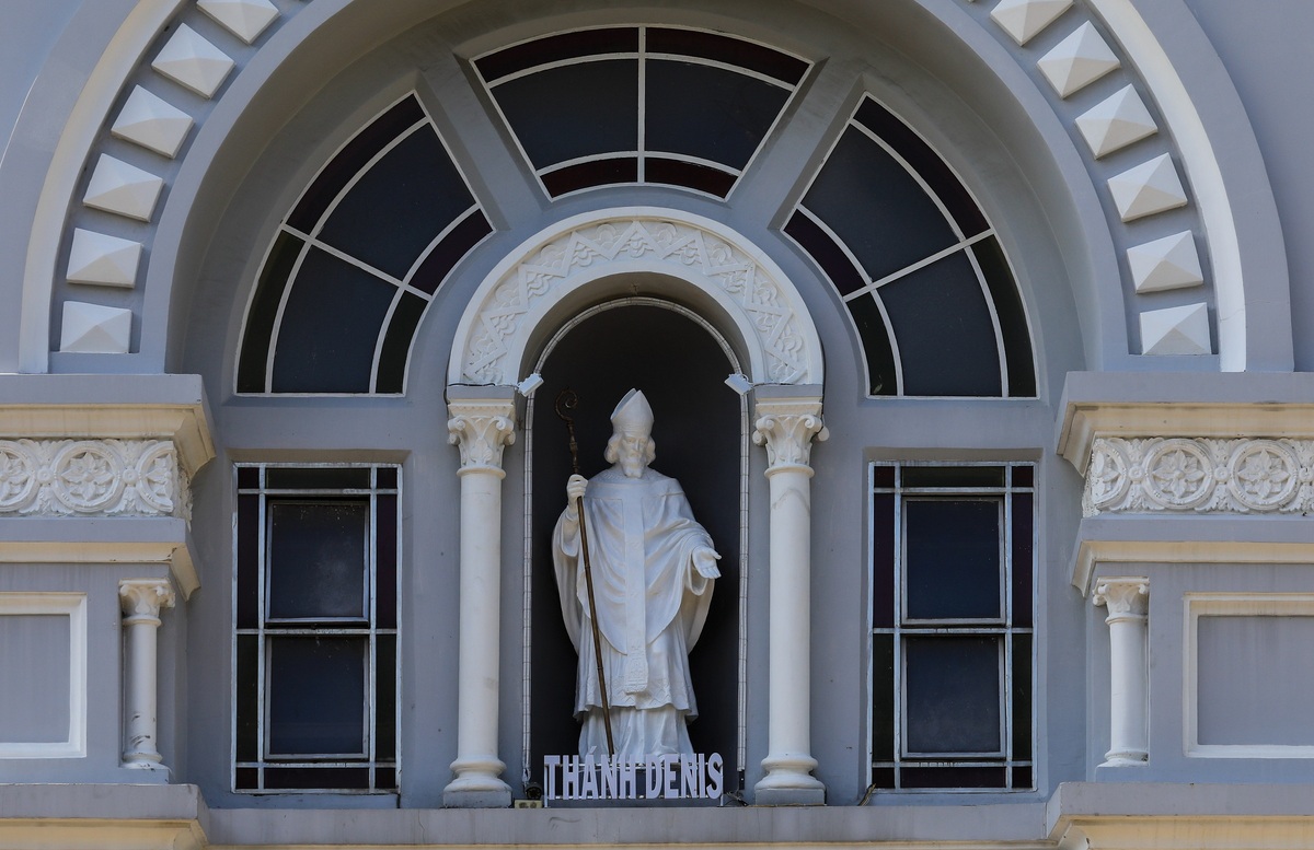 Phía cửa trước nhà thờ Hạnh Thông Tây có tượng Thánh Denis là thánh quan thầy của ông Denis Lê Phát An.
