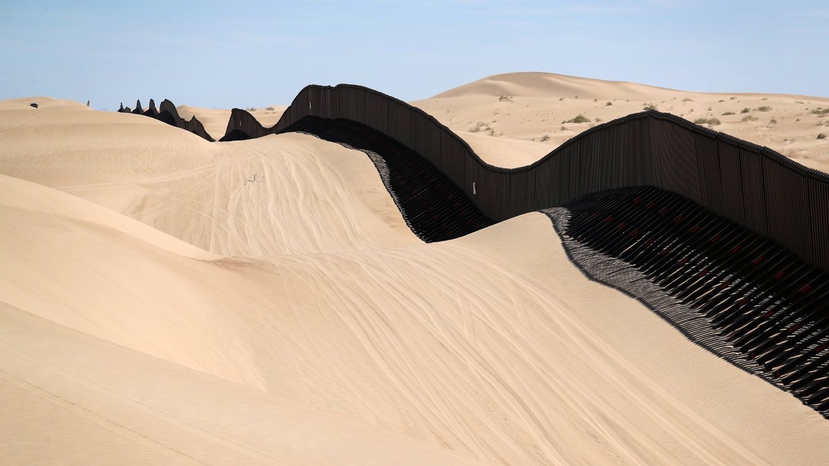 Một phần hàng rào biên giới chạy qua sa mạc ngăn cách giữa bang Arizona của Mỹ và bang Sonora của Mexico. Với chiều cao khoảng 4,5 m, các bộ phận của bức tường có thể nâng lên bằng máy và đặt trở lại vị trí ban đầu nhằm đối phó với những cơn bão cát có thể chôn vùi chúng.