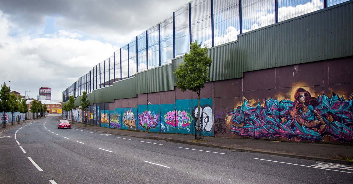 “Bức tường hòa bình” phân chia khu vực sống của cộng đồng người Công giáo và Tin lành tại Belfast, Bắc Ireland. Mặc dù hai bên đã đạt được thỏa thuận ngừng bắn từ năm 1994, nhưng bức tường vẫn được xây dựng ngày càng cao vì những cuộc tấn công đơn lẻ vẫn xảy ra. Nhiều đoạn tường cao đến 8 m trong đó phần bê tông cao 5 m, 3 m phía trên là hàng rào để ngăn chặn những phần tử quá khích ném vật cứng, bom xăng.