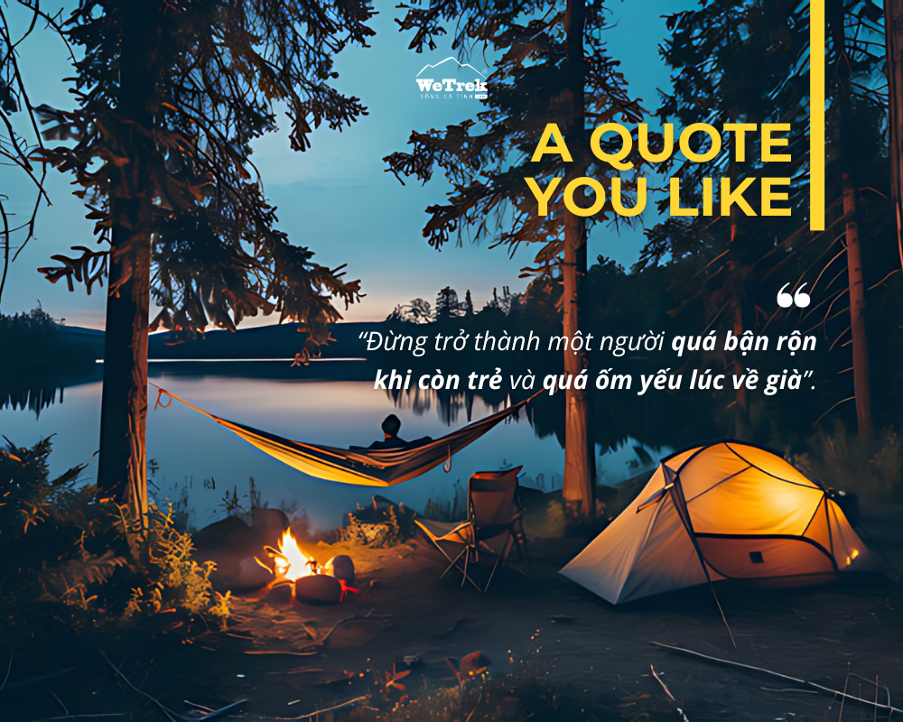 Đối với nhiều bạn trẻ, du lịch và cắm trại là món ăn tinh thần không thể thiếu, mang lại những trải nghiệm phong phú và ý nghĩa. Tuy nhiên, vẫn có người cho rằng đi du lịch hay cắm trại chỉ là sự hưởng thụ của những kẻ “vô công rỗi nghề”. Vì vậy, trong bài viết này, WeTrek xin gửi tới bạn những câu quote hay về du lịch và cắm trại để truyền tải thông điệp ý nghĩa, giúp mọi người hiểu rõ hơn về giá trị đích thực của những chuyến đi.