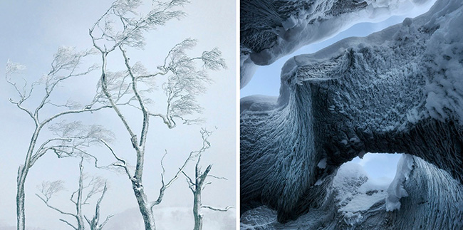 Stephen King đến từ Hồng Kông đã ghi lại một cảnh quan giá lạnh tuyệt đẹp (ảnh trái), trong khi Adam Gibbs thì chụp cầu Natural ở Virginia vào mua đông (ảnh phải).