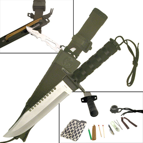 Khái niệm về Survival Knife – tạm dịch là dao sinh tồn – có vẻ còn khá xa lạ với chúng ta. Thực chất, nó là một con dao với lưỡi dao dài, một bên lưỡi dao có răng cưa. Cán loại dao này rỗng bên trong, chúng ta có thể để vào trong đó nhiều đồ đạc hỗ trợ khác, ví dụ như diêm, la bàn,...