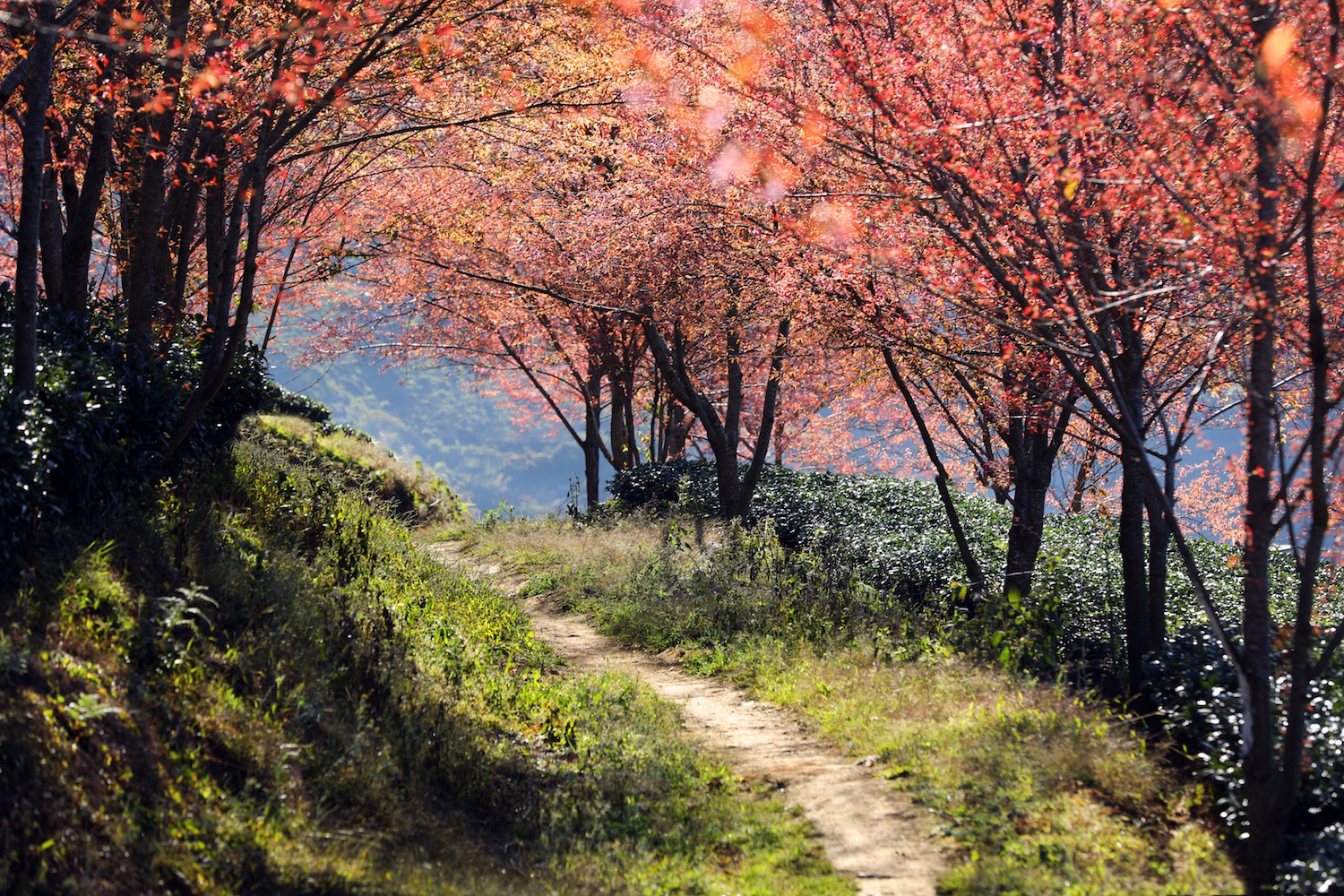 Nằm cách thị trấn Sa Pa, Lào Cai, 8 km về hướng Tây Bắc, ở độ cao khoảng 1.800 m so với mực nước biển, đồi Chè Ô Long được trồng xen với hoa mai anh đào dọc lối đi tạo nên bức tranh thiên nhiên quyến rũ. Những ngày giữa tháng 12, Sa Pa bước vào thời điểm đẹp nhất năm. Nhiều du khách lại tìm đến nơi này để ngắm những hàng cây hoa anh đào đang nở rộ. Dưới tia nắng vàng rọi xuống, chồi lá non hiện lên mảng màu rực rỡ. Những con đường quanh co, ánh nắng bình minh buổi sớm chiếu xuống tạo nên cảnh sắc bừng sáng một vùng trời bình yên. Dịp này có mặt tại đây hít thở bầu không khí trong lành cùng không gian lãng mạn là điều nhiều du khách thích thú, như được lạc vào chốn phiêu bồng, mênh mông.
