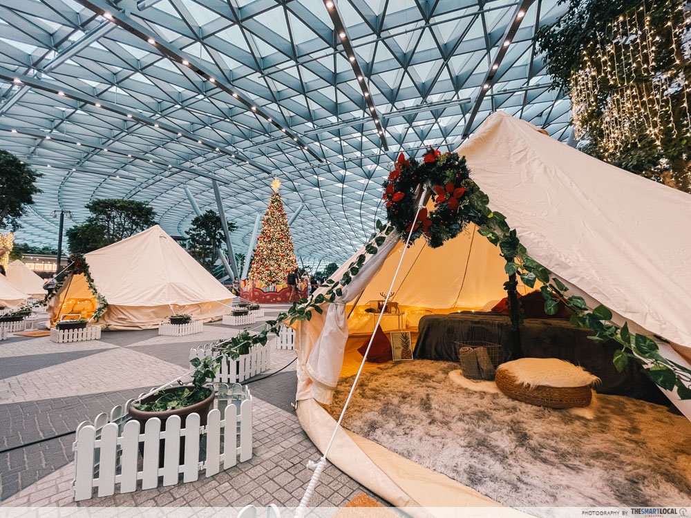 Các suất đăng ký "Glamping in the Clouds" (Cắm trại trên những đám mây) tại sân bay quốc tế Changi đã được đặt hết trong thời gian ngắn. Sự kiện này nằm trong khuôn khổ mùa lễ hội Festival Village, kéo dài đến 3/1. Theo đó, du khách có thể nghỉ đêm bên trong những chiếc lều sang trọng tại các khu bán lẻ, giải trí tại tầng cao nhất của sân bay. Tối đa 4 người được ngủ trong một lều.
