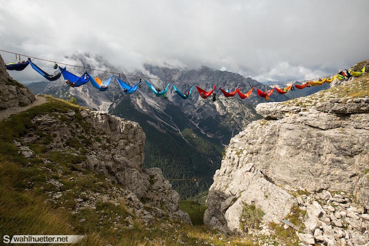 Nhóm những người say mê phiêu lưu trên thế giới đã tới đồi Monte Piana ở Italy hàng năm để thể hiện tình hữu nghị và hòa bình. Họ bắc một cây cột, treo võng, và chơi nhạc khi đang ở trên độ cao vài trăm mét cách mặt đất.