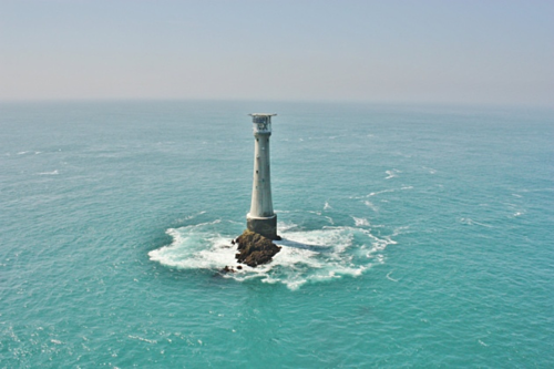 Ngọn hải đăng trên đảo Bishop Rock. Thời xa xưa, ngọn hải đăng chiếu sáng nhờ đèn dầu và trước đó là nến, với ánh sáng chiếu xa tới 24 hải lý. Ngày nay ngọn đèn biển này có máy phát điện, pin và sân bay trực thăng dựng từ năm 1976 - nhờ đó khách tham quan có thể hạ cánh trên đỉnh công trình thay vì đi thuyền. Ảnh: Trinity House.