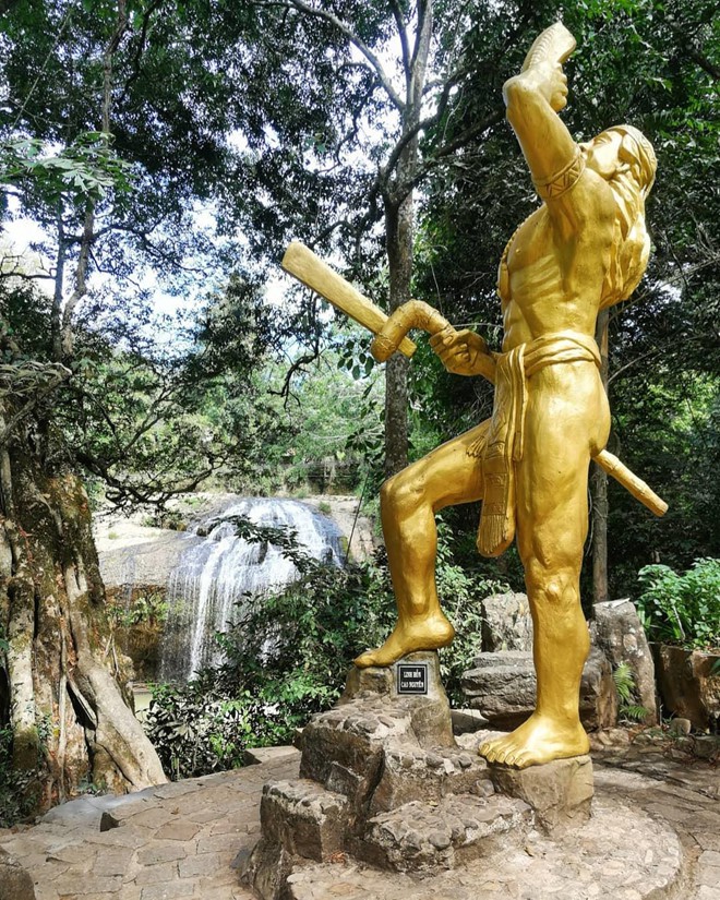 4 sừng tê giác 4 gạc hươu sao 4 dấu chân voi 4 chiếc đuôi công Về tên thác Pongour, hiện có một số lí giải khác nhau được đưa ra. Theo Cổng TTĐT Lâm Đồng, giả thuyết phổ biến nhất, nhiều người nhắc đến là Pongour xuất phát từ tiếng K'Ho, nghĩa là 4 sừng tê giác. Gắn với cách giải thích này có truyện cổ về nữ tù trưởng Ka Nai xinh đẹp, trẻ trung, sức mạnh hơn cả thanh niên dũng sĩ trong vùng. Nàng có tài chinh phục thú rừng, nhất là tê giác, nên trong bộ lạc có đến 4 con tê giác khác thường. Ka Nai thường dùng chúng để khai phá núi rừng đồi suối, đánh giặc bảo vệ buôn làng... (Ảnh: Lena__nr).