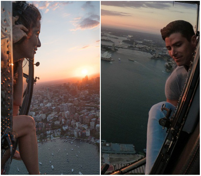 Berry và Stewart trên máy bay trực thăng trước giờ khởi hành ở Sydney, Australia