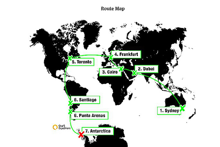 Sau khi quyết định thời gian bắt đầu vào ngày 13/12/2017, chuyến hành trình của họ sẽ bắt đầu ở Sydney và kết thúc ở đảo King George, Nam Cực.