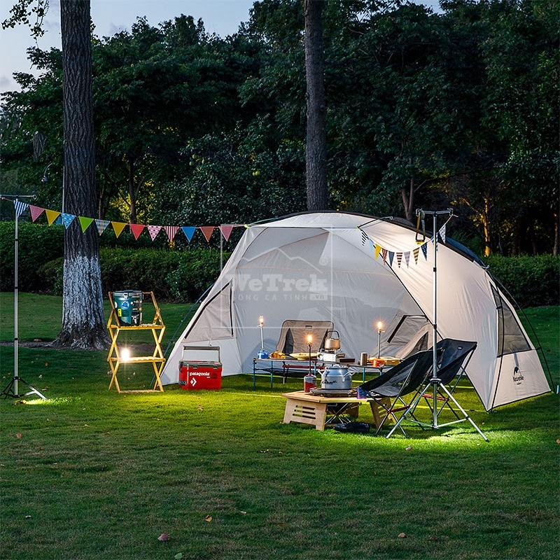 Bạn đã bao giờ hình dung lều cắm trại có thể dùng cho 8 người chưa? Dòng lều Naturehike Glamping Village, một sản phẩm lều mang tới hình thức của một căn nhà nhỏ. Không gian đủ dùng cho 01 gia đình từ 3 – 4 người hoặc có thể làm lều trung tâm cho rất đông người.