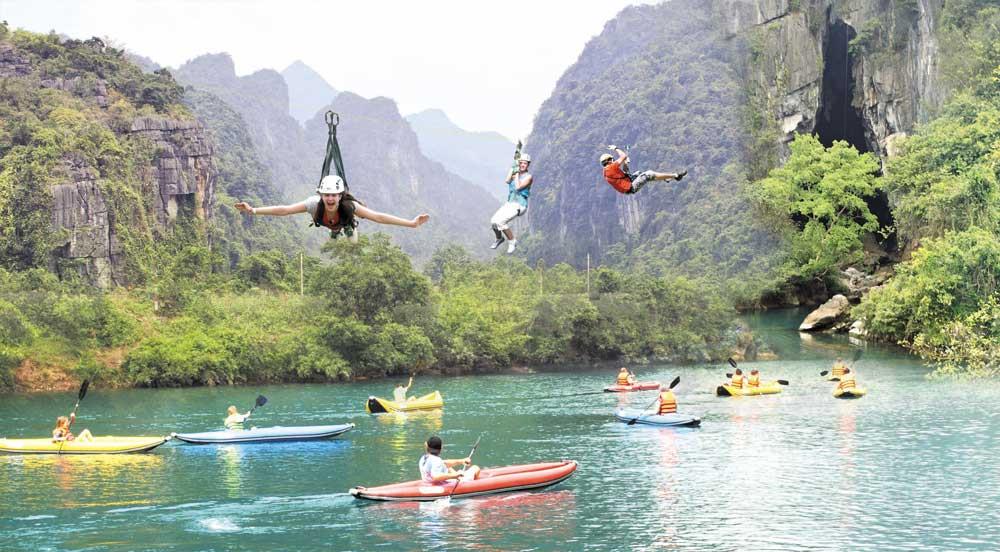 Nếu bạn muốn ngắm cảnh Vườn Quốc gia Phong Nha – Kẻ Bàng từ trên cao nhưng giá dịch vụ bay ngắm bằng máy bay lại quá đắt đỏ so với túi tiền của mình thì trượt Zipline chính là một lựa chọn lý tưởng mặc dù không hoàn toàn bao quát được cảnh vật tại đây. Đường trượt tại Vườn Quốc gia Phong Nha – Kẻ Bàng có tuyến đu xuất phát từ nhánh tây đường Hồ Chí Minh vào Hang Tối nằm bên kia Sông Chảy với chiều dài 400m. Giá dịch vụ ở đây là 80.000 đồng/người/lượt đối với người lớn và 60.000 đồng/người/lượt đối với trẻ em.